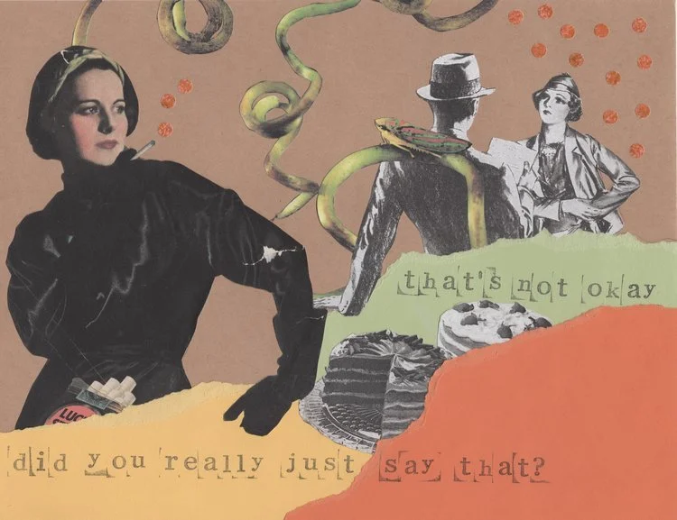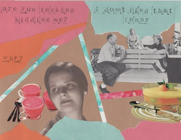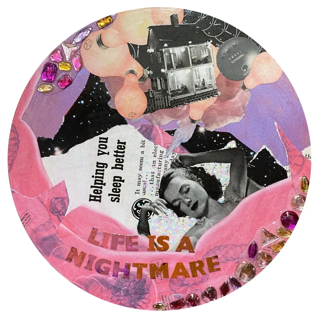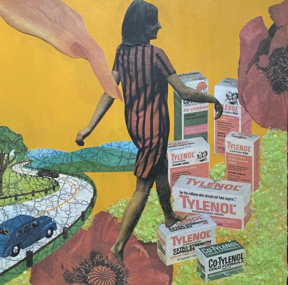 “My Mind is an Escape Room” is a body of mixed media collage work created from 2019 to 2022, chronicling my experience with mental and physical illness, as well as struggles with body image and societal issues. For as long as I can remember, my brain seemed to work differently than most people I know, battling against itself, as well as the fears and thoughts that I often cannot seem to stop. I have never been to an “Escape Room,” and have joked that I have no interest in them, because “my mind is an escape room.” The one way out for me is the therapeutic process of making art.